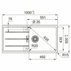 Pré-percé Ø 35 mm pour robinetterie et commande rotative (utilisez la scie cloche livrée avec l’évier).