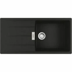 Evier à encastrer Centro Fragranit+ CNG 611-XL Franke 913850. 1 cuve à fleur de plan ou à encastrer : le Fragranit+ est composé à 80% de sable de silice et de 20% de résine composite. Cela le transforme en un matériau particulièrement polyvalent et gratifiant : il permet de réaliser à la fois des coins et bordures impressionnants et de détails fonctionnelles et optiques ravissantes. Fragranit+ le quatrième matériau le plus dur après le diamant, le rubis et le topaze. Il est résistant contre les fissures et l’abrasion et insensible aux acides utilisés dans la cuisine, aux rayures, au froid et à la chaleur inférieur à 280 °. Sa finition lisse procure au matériau un toucher agréable et se nettoie aisément. Vidage Gain de place comprenant bonde manuelle Ø 90 inox et siphon.