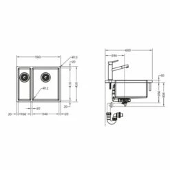 Bassin 340 x 410 x 200 mm / 160 x 410 x 140 mm