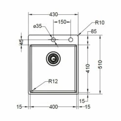 – Evier percé 35 mm pour robinetterie et commande rotative