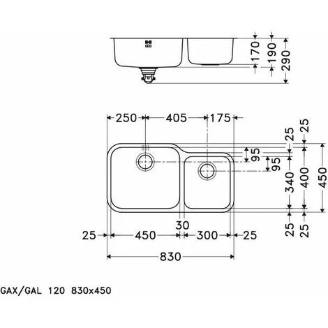 Bassin 450 x 400 x 190 mm / 300 x 340 x 170 mm