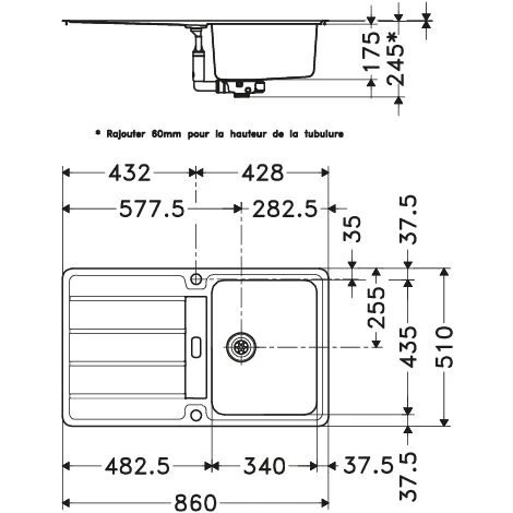 – Vidage gain de place comprenant bonde ø 90 mm et siphon (Bonde Turbo Automatique)