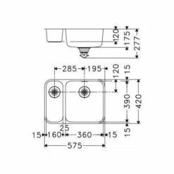 Bassin 360 x 390 x 175 mm / 160 x 390 x 120 mm