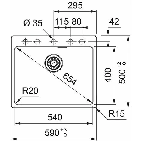 Evier pré-percé ø 35mm pour robinetterie et commande de vidage