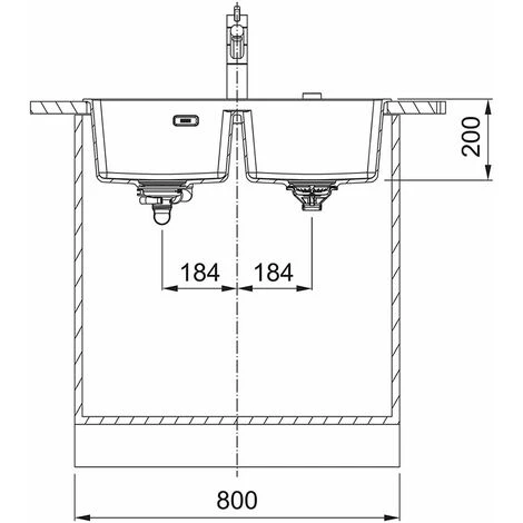 Evier pré-percé ø 35mm pour robinetterie et commande de vidage