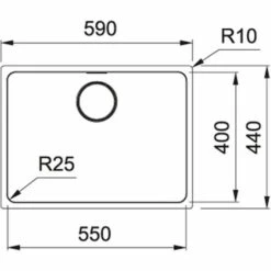 Rayons 25mm en haut et 10mm en bas dans les angles de la cuve
