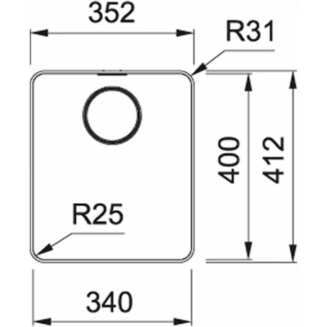 Rayons 25mm en haut et 10mm en bas dans les angles de la cuve