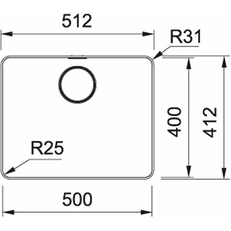 Rayons 25mm en haut et 10mm en bas dans les angles de la cuve