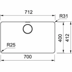 Rayons 25mm en haut et 10mm en bas dans les angles de la cuve
