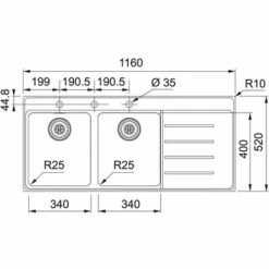 – Evier percĂ© 35 mm pour robinetterie et bouton push