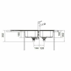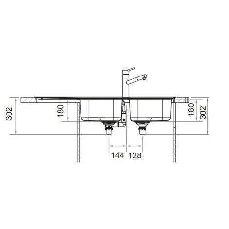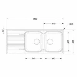 – Eviers percés ø 35 mm pour robinetterie et commande rotative