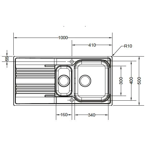 Bassin 340 x 400 x 180 mm / 160 x 300 x 120 mm