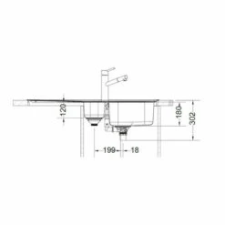 – Evier livré avec joint mousse et pattes de fixation montés en usine
