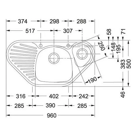 Dimensions 960 x 500 mm