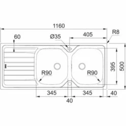 Evier inox à encastrer toilé 2 cuves 1 égouttoir 1160x500mm RNN621