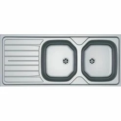 Evier inox à encastrer toilé 2 cuves 1 égouttoir 1160x500mm RNN621