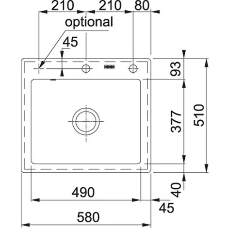 Dimensions : 580 x 510 mm. Découpe : 560 x 490 mm. Bassin : 490 x 377 x 190 mm.