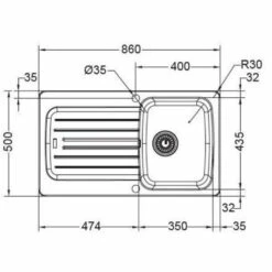 Caractéristiques de l’Evier Franke Aveta AVD611-86 86x50cm avec égouttoir réversible, Fradura, Blanc (AVD611-86B) :