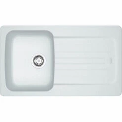 Caractéristiques de l’Evier Franke Aveta AVD611-86 86x50cm avec égouttoir réversible, Fradura, Blanc (AVD611-86B) :