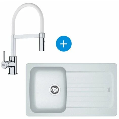 CaractĂ©ristiques de l’Evier 86x50cm avec Ă©gouttoir rĂ©versible Fradura, Blanc + Mitigeur cuisine semi-pro, douchette extractible, Chrome/Blanc (AVD611-86B-LINA2) :