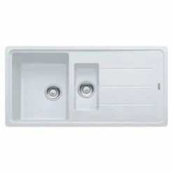 CaractĂ©ristiques de l’Evier 97x50cm avec vide sauce et Ă©gouttoir rĂ©versible, Fragranit +, Blanc, Franke Basis BFG 651 (BFG651B) :