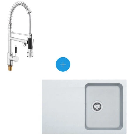 Laissez-vous séduire par ce Kit Evier à encastrer Orion en tectonite, 780mmx500mm, Blanc Artic + Mitigeur SAT Semi-Pro 2 flux (OID611-78B-BSD).