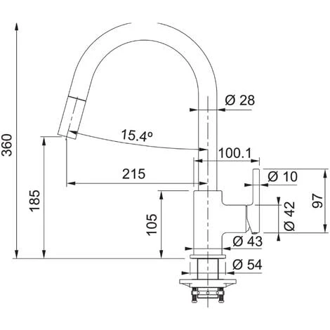 Caractéristiques du Mitigeur de cuisine 215x360mm, Douchette extractible, Rotation du bec  150°, Fragranit, Noir mat, Franke Lina (115.0626.053) :