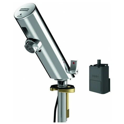 à commande électronique, pour le raccordement à l’eau chaude et froide à l’aide de tuyaux équipés d’empêcheurs de retour intégrés et de sept, Électronique de commande, cartouche de valve magnétique et capteur dans le boîtier en métal entier, laiton poli chromé, avec levier de réglage de la température et attaque de température réglable, éclaireur d’air avec régulateur de débit intégré 6 l/min, rinçage hygiénique activé 24 heures après la dernière commande, arrêt de la sécurité lors de la réflexion permanente et stockage des données statistiques, possibilité de paramétrage et de communication via une télécommande bidirectionnelle optionnelle. Type de robinet: batterie électronique, marque: FRANKE. Type de robinet: batterie électronique, marque: FRANKE. Type de robinet : Batterie électronique, marque : FRANKE