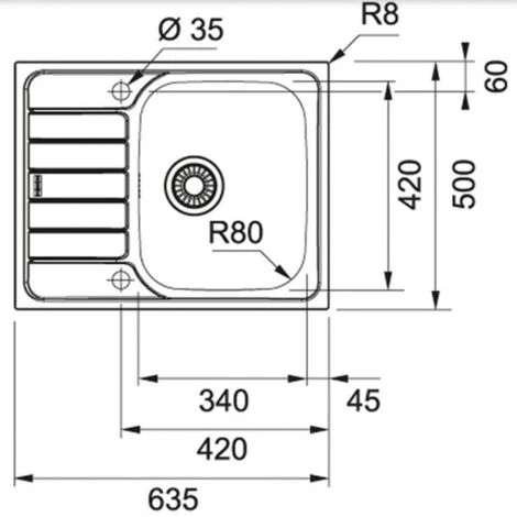 Caractéristiques de l’Évier 63,5x50cm avec égouttoir réversible, Inox (SKN611-63) :
