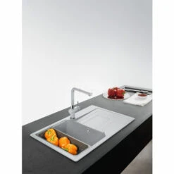 Le Fragranit+ est fabriquĂ© Ă partir du Quartz, soit l’un des matĂ©riaux les plus rĂ©sistants. La surface de votre Ă©vier rĂ©sistera Ă des tempĂ©ratures allant jusqu’Ă 280°C. Il est aussi rĂ©sistant aux impacts et aux chocs thermiques, mĂȘme les couteaux ne pourront abĂźmer sa surface.