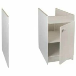 Meuble mĂ©laminĂ© blanc, chants supĂ©rieurs plaquĂ©s. Avec Ă©tagĂšre, panneau arriĂšre amovible sans outils (accĂšs au vide sanitaire) , fourni avec joue dâextrĂ©mitĂ©. VĂ©rins rĂ©glables (mini 870 mm â maxi 885mm). Vide sanitaire de 74mm ou 138mm. Meuble certifiĂ© PEFCÂ