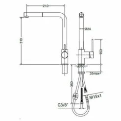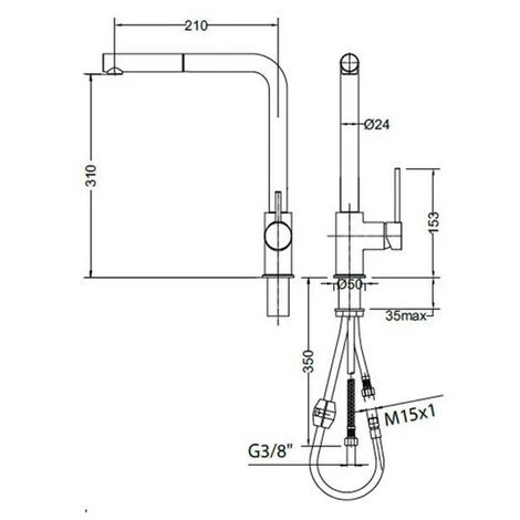 Mitigeur évier Sinus plus 850272 Franke avec bec haut à douchette monojet extractible. Douchette en laiton. Rotation du bec sur 360°. Embase Ø 50 / perçage Ø 35 mm. Système de fixation avec corps fileté. Finition chromée. Hauteur 344 mm.