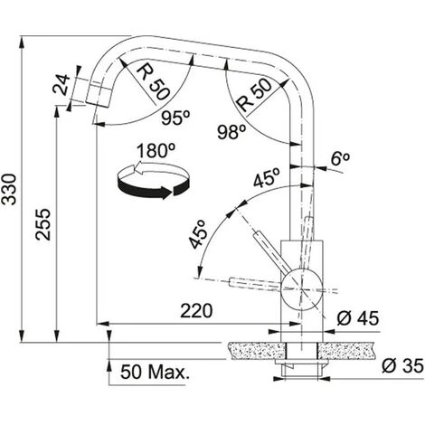 Robinet Franke KUBUS, tout Inox, mitigeur à bec et rotation du bec à 360°