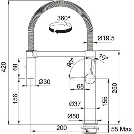 Rotation douchette : 360°