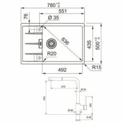 Pack évier + mitigeur Franke 968126 avec planche à découper Bamboo. Evier Centro CNG 611-XLC une cuve à fleur de plan ou à encastrer : le Fragranit+ est composé à 80% de sable de silice et de 20% de résine composite. Cela le transforme en un matériau particulièrement polyvalent et gratifiant : il permet de réaliser à la fois des coins et bordures impressionnants et de détails fonctionnelles et optiques ravissantes. Fragranit+ le quatrième matériau le plus dur après le diamant, le rubis et le topaze. Il est résistant contre les fissures et l’abrasion et insensible aux acides utilisés dans la cuisine, aux rayures, au froid et à la chaleur inférieur à 280 °. Sa finition lisse procure au matériau un toucher agréable et se nettoie aisément. Vidage Gain de place comprenant bonde manuelle Ø 90 inox et siphon. Trop-plein inox design et hygiènique. Pré-percé Ø 35 mm pour robinetterie et commande rotative (utilisez la scie cloche livrée avec l’évier).