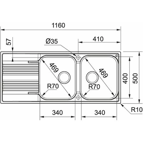 – Eviers percés ø 35 mm pour robinetterie et commande de vidage