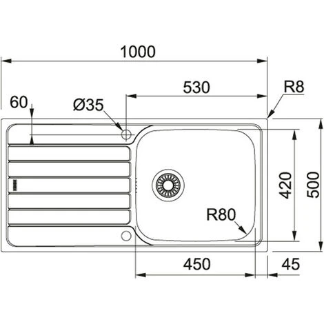 – Eviers percés ø 35 mm pour robinetterie et commande rotative