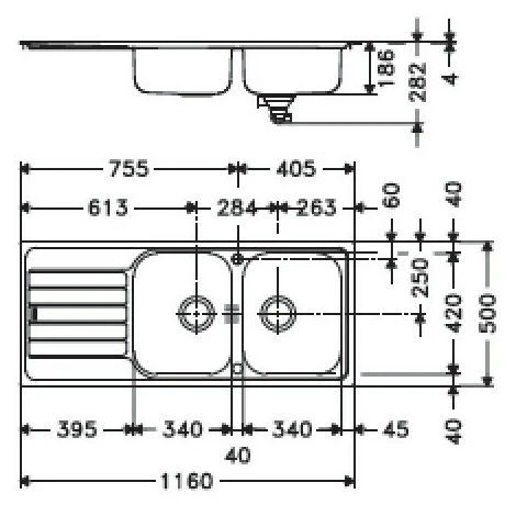 – Bassin 2 x 340 x 420 x 160 mm